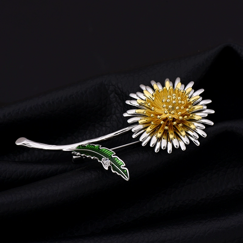 Wanhuishop Dandelion Zircon Brooch Versatile Shawl Pin Buckle Metal Gem Chest Flower Accessory