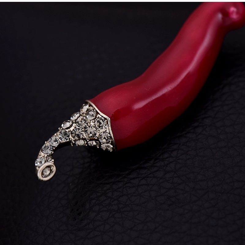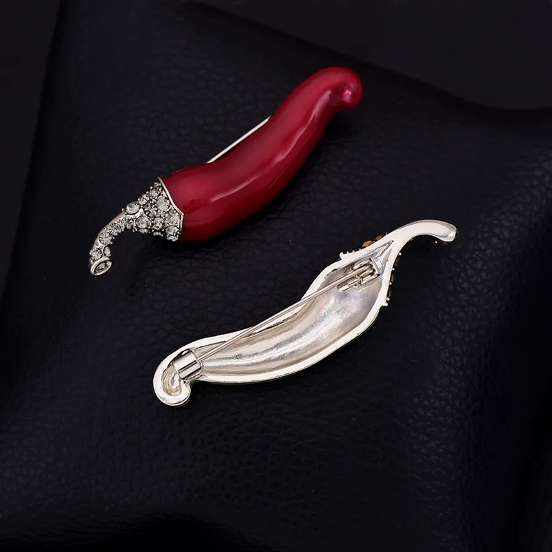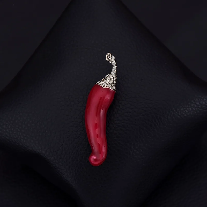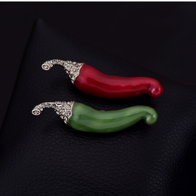 Wanhuishop Lady Luxury Cute Chili Brooch Banquet Versatile Pin Metal Gem Chest Flower Accessories