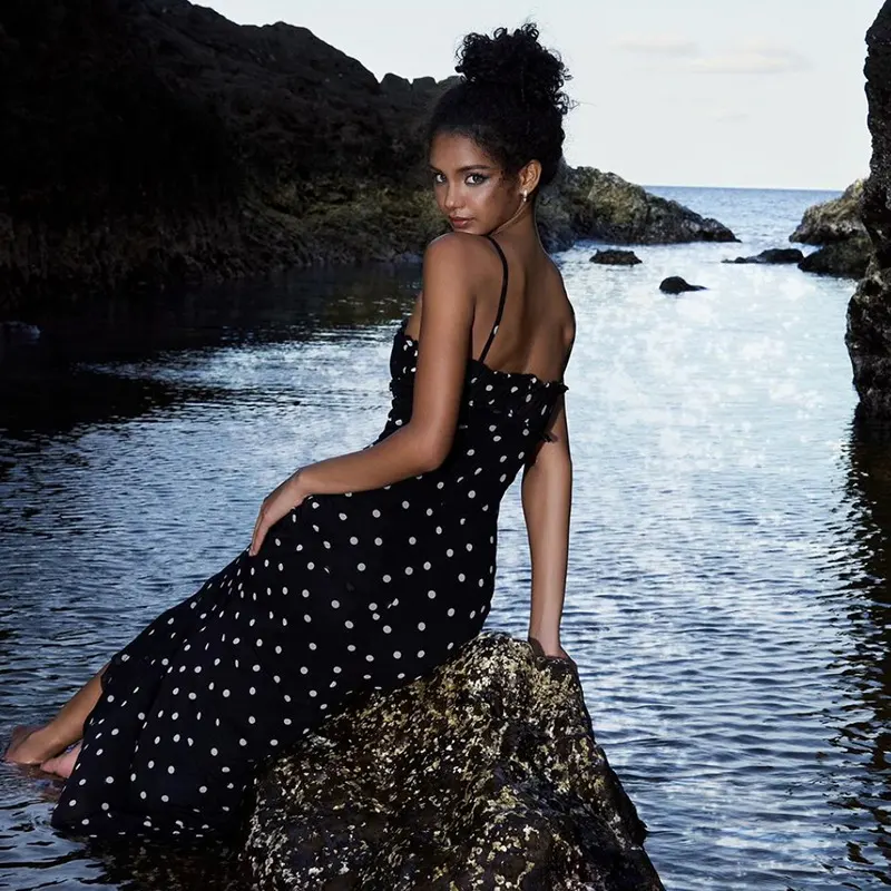 WanHuiShop New Women’s Polka Dot Camisole Dress French Style Slim Fit Backless Skirt