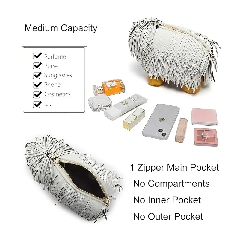 Capacity: 1 large zipper main pocket (no interlayer) , can accommodate daily items such as mobile phones, folding umbrellas, cosmetics, etc